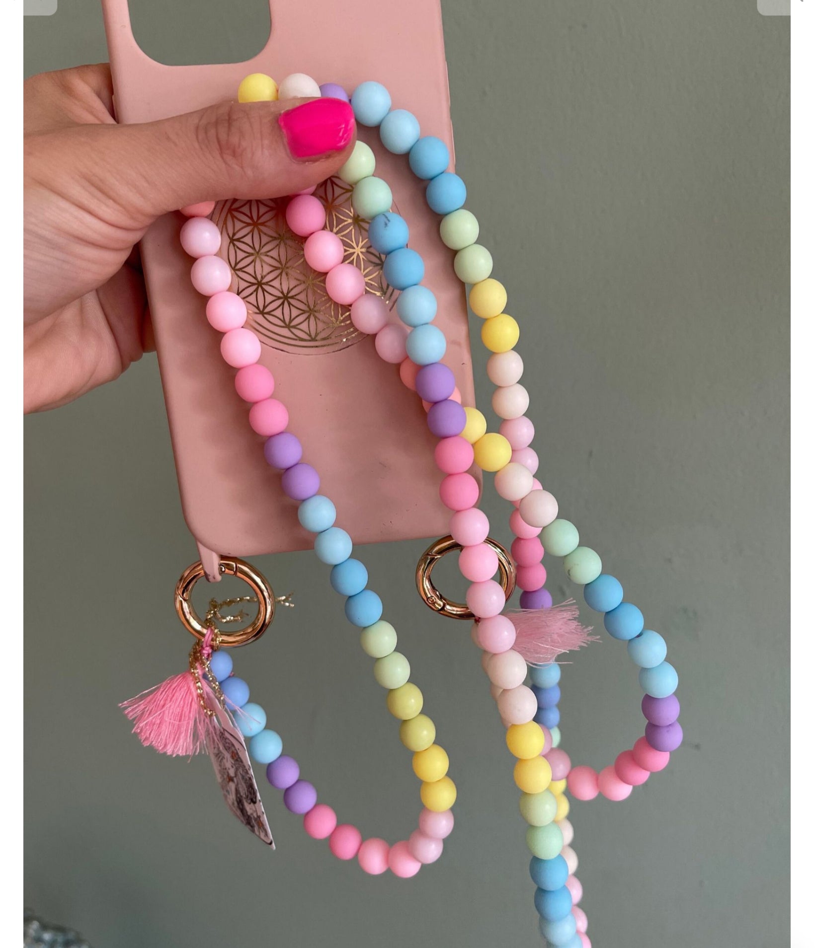 Handykette aus bunten Perlen & Karabiner | Pastell -Handyband mit Quasten Diese farbenfrohe Handykette ist das perfekte Accessoire für alle, die es verspielt, praktisch und einzigartig lieben! Das Band besteht aus matten Silikonperlen in zarten Farben – von Rosa über Mint bis Flieder. Befestigt wird die Kette mit stabilen, goldfarbenen Karabinern (auch in silber erhältlich) Ob im Alltag, auf Festivals oder als Geschenk – diese Kette macht dein Smartphone zum Hingucker und sorgt dafür, dass du es immer griffbereit hast.