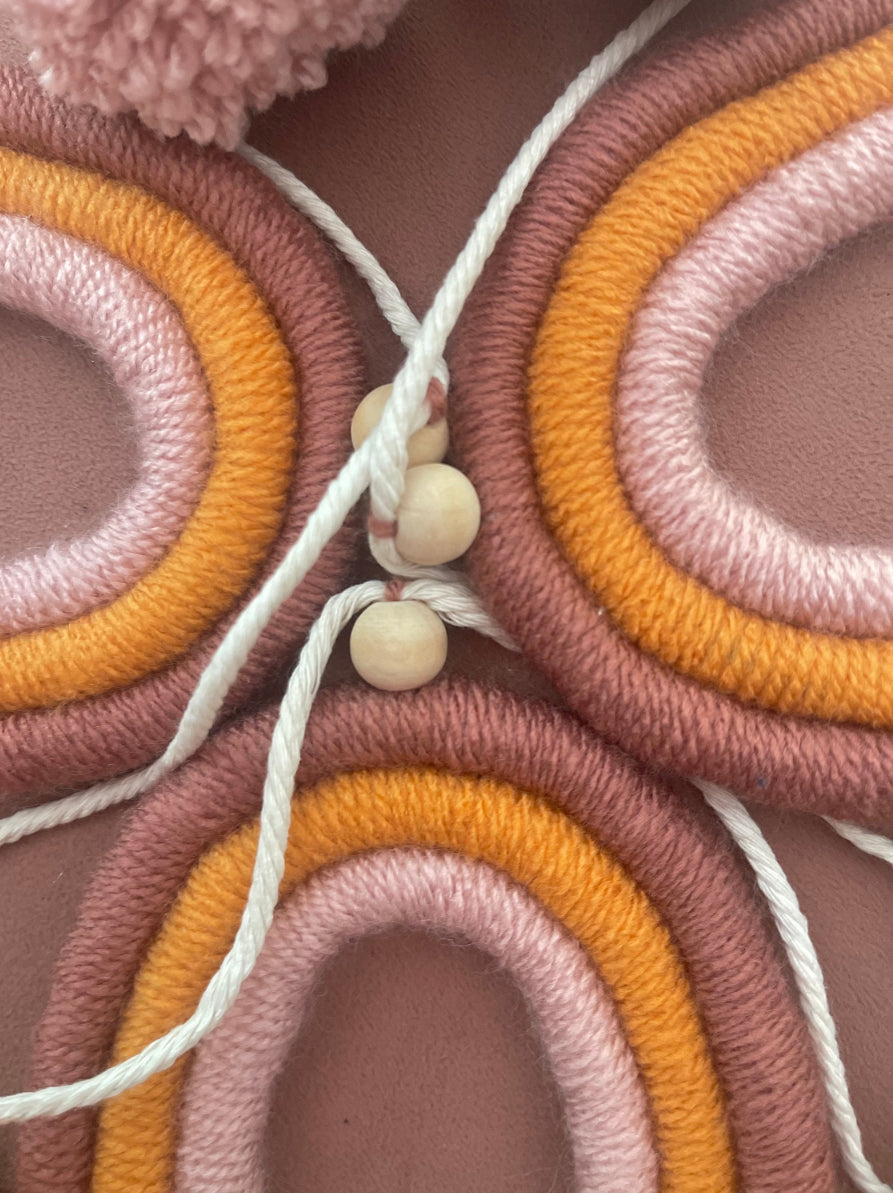 Die Standardgirlande hat eine Länge von ca. 105 cm (anpassbar) und besteht aus 3 handgeknüpften Regenbogen, die in gleichmaßigen Abständen angeordnet sind.